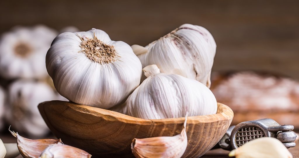 Ajo fresco de origen criollo (Constanza) y de origen Chino (Heze) en dos presentaciones; sacos de polipropileno de 22 libras y en paquetes pequeños de 5 cabezas (1/2 libra).
